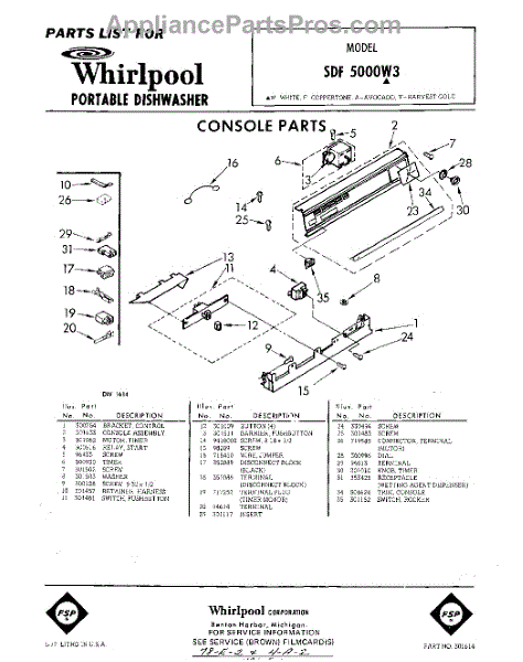 Parts for Whirlpool SDF5000W3: 01 - Console Parts
