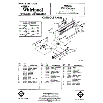 Parts for Whirlpool SDF5000W6: 01 - Console Parts