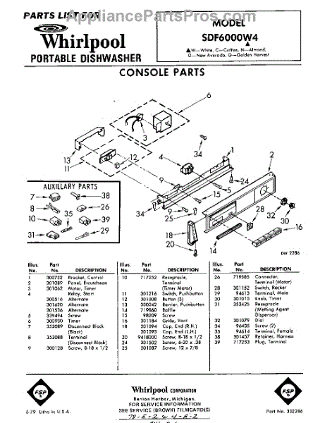 Parts for Whirlpool SDF6000W4: 01 - Console Parts