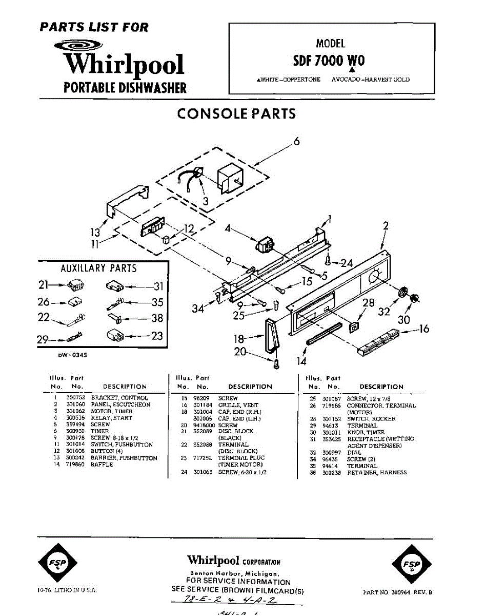 Parts for Whirlpool SDF7000W0: 01 - Console Parts