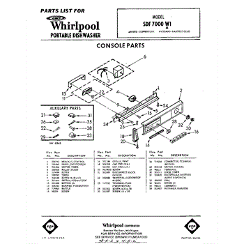 Parts for Whirlpool SDF7000W1: 01 - Console Parts
