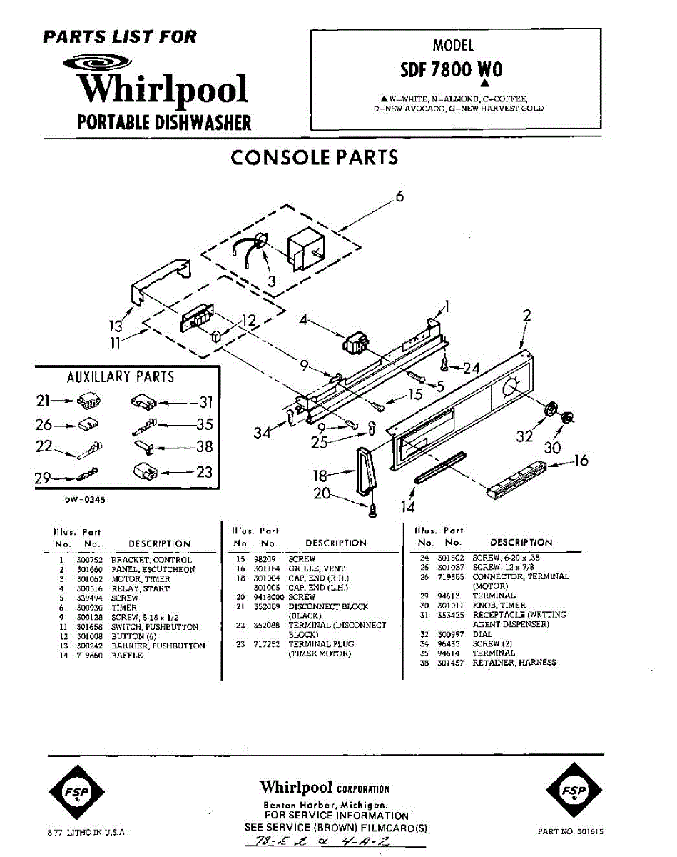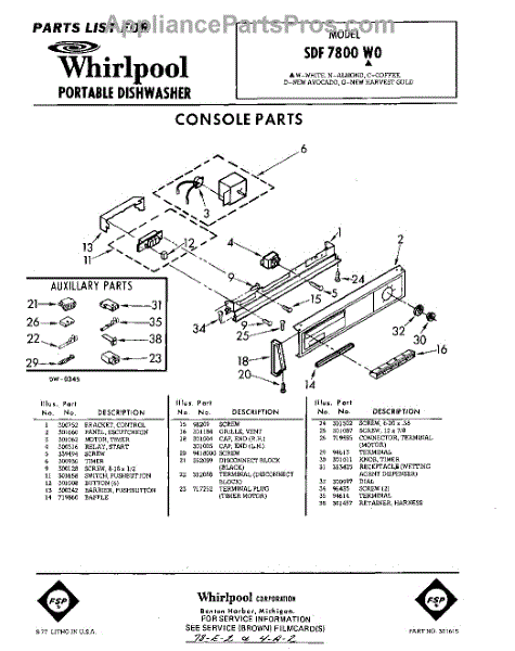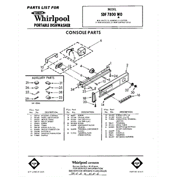 Parts for Whirlpool SDF7800W0: 01 - Console Parts
