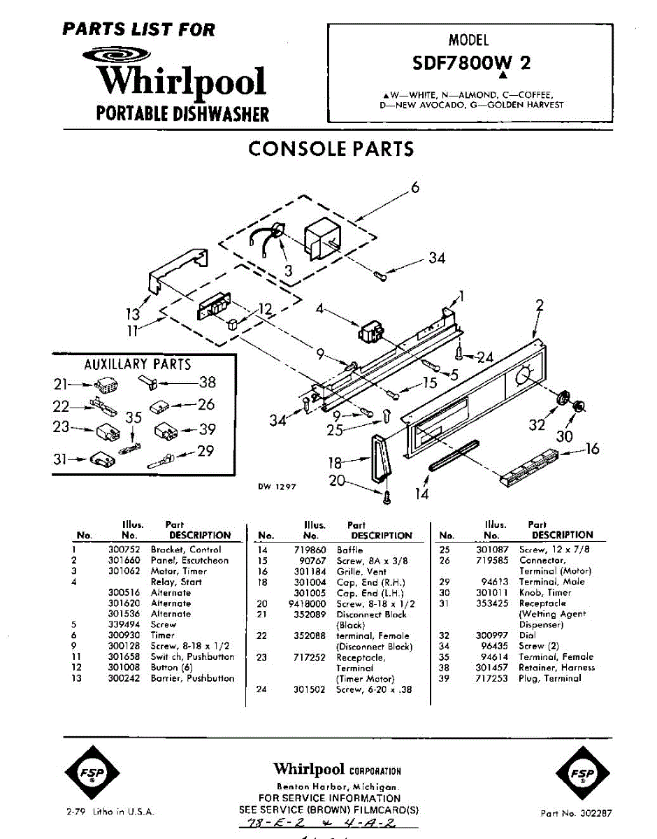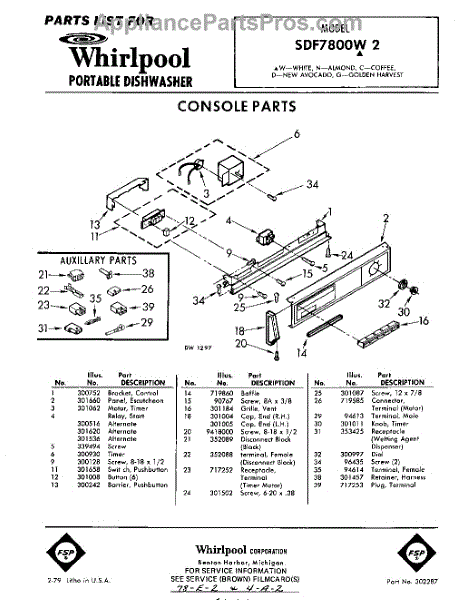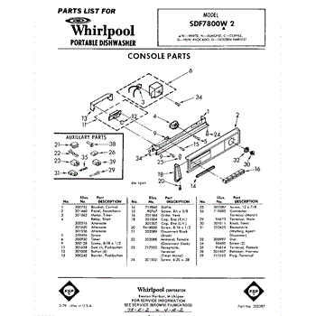 Parts for Whirlpool SDF7800W2: 01 - Console Parts