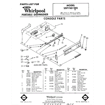 Parts for Whirlpool SDF7801W0: 01 - Console Parts