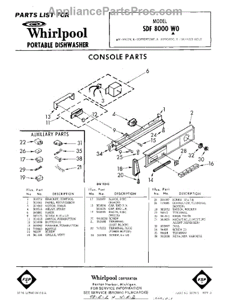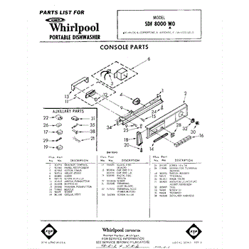 Parts for Whirlpool SDF8000W0: 01 - Console Parts