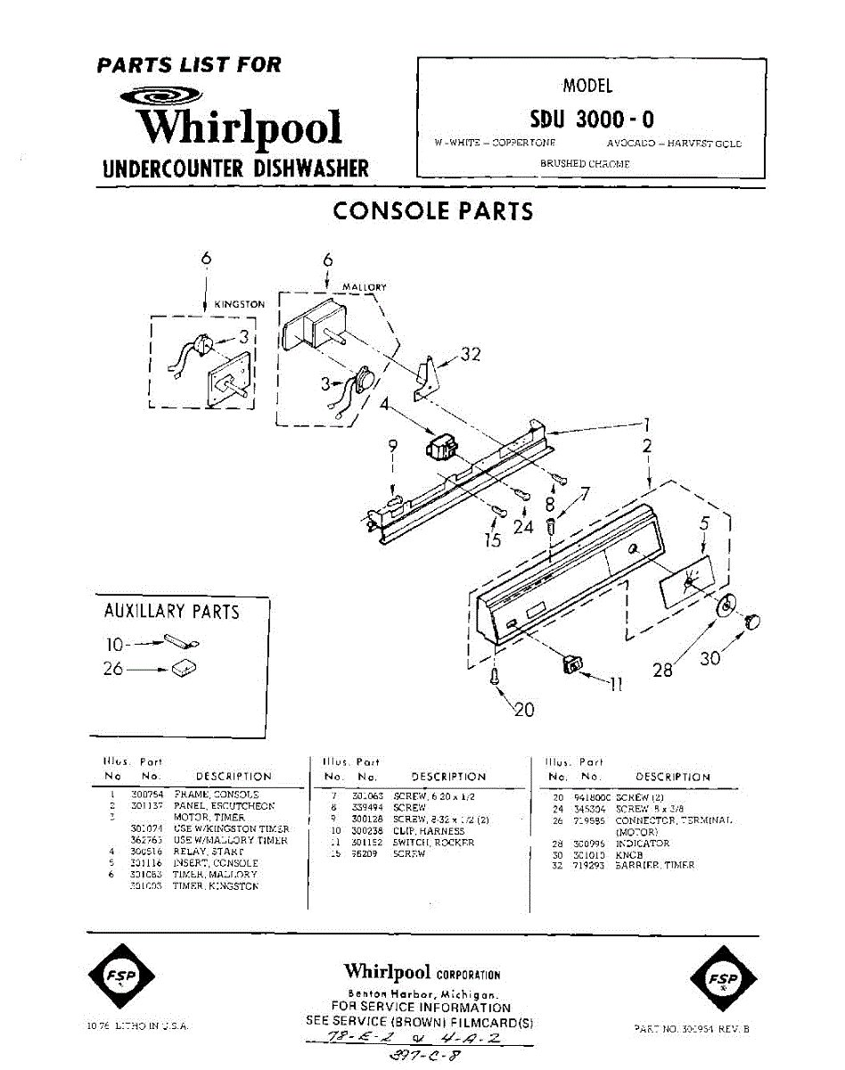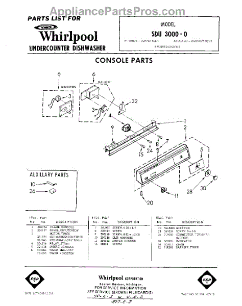 Parts for Whirlpool SDU30000: 01 - Console Parts