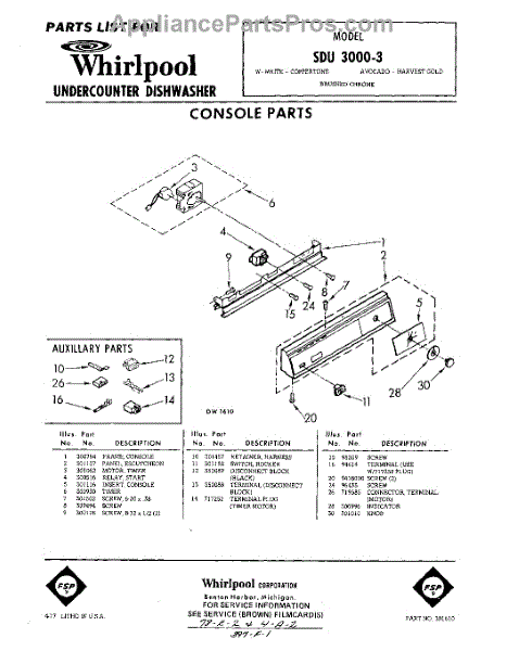 Parts for Whirlpool SDU30003: 01 - Console Parts