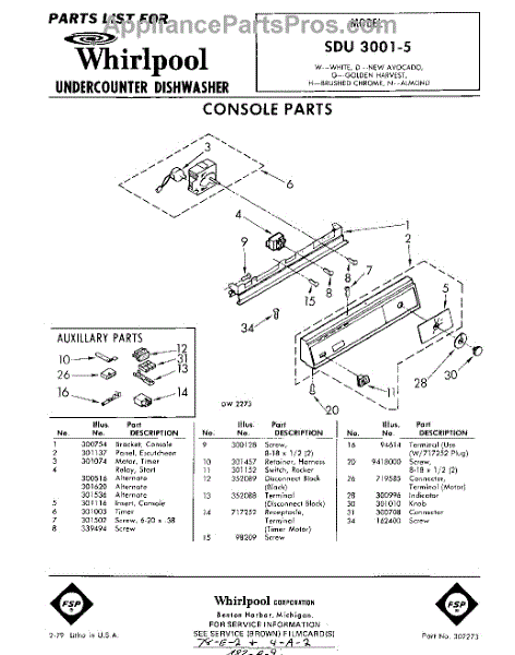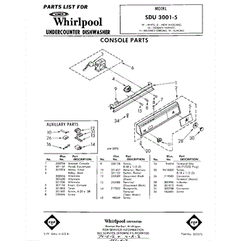Parts for Whirlpool SDU30015: 01 - Console Parts