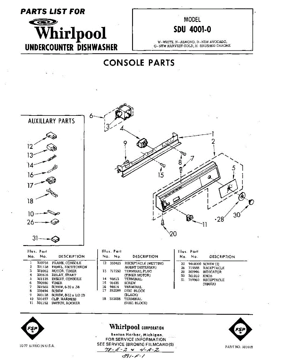 Parts for Whirlpool SDU40010: 01 - Console Parts