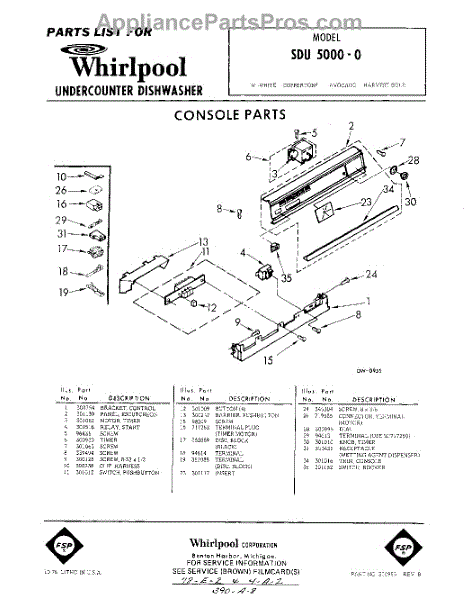 Parts for Whirlpool SDU50000: 01 - Console Parts