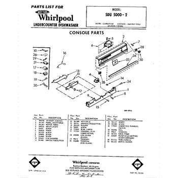 Parts for Whirlpool SDU50002: 01 - Console Parts