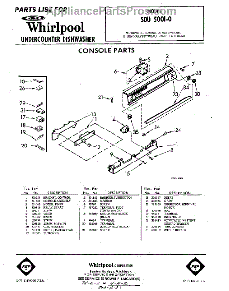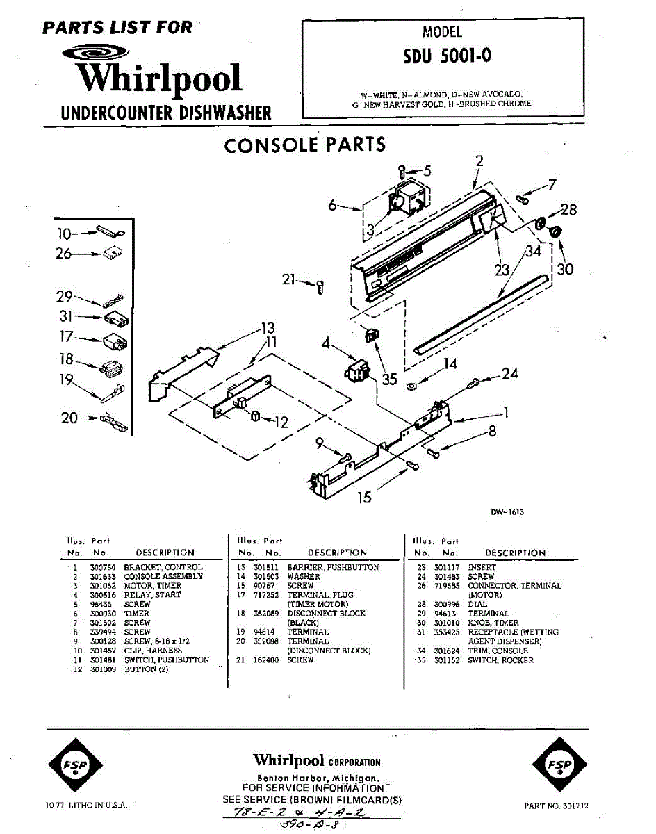 Parts for Whirlpool SDU50010: 01 - Console Parts