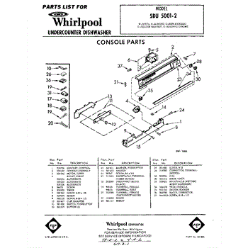 Parts for Whirlpool SDU50012: 01 - Console Parts
