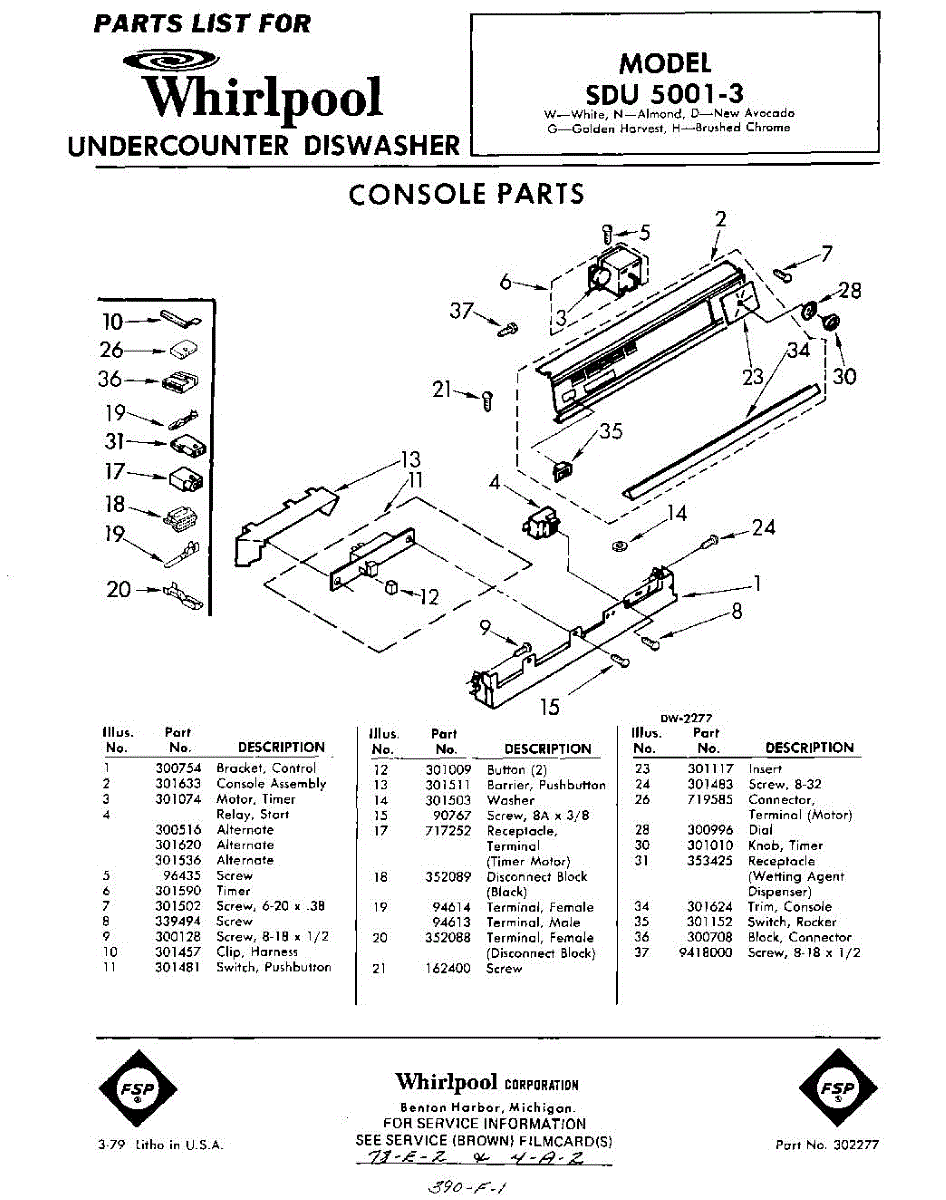 Parts for Whirlpool SDU50013: 01 - Console Parts