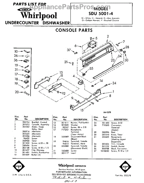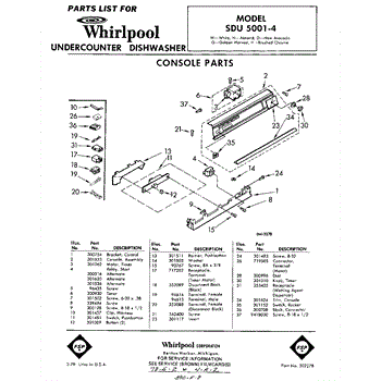 Parts for Whirlpool SDU50014: 01 - Console Parts