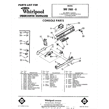 Parts for Whirlpool SDU70010: 01 - Console Parts