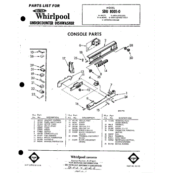 Parts for Whirlpool SDU80010: 01 - Console Parts