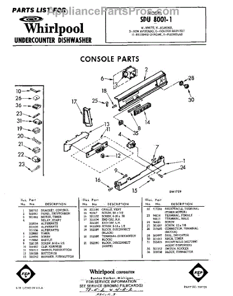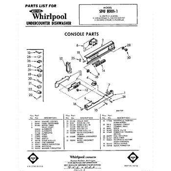 Parts for Whirlpool SDU80011: 01 - Console Parts