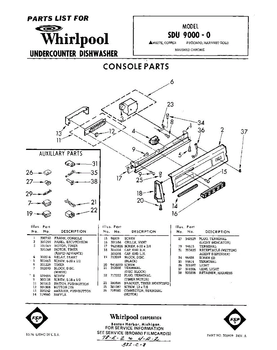 Parts for Whirlpool SDU90000: 01 - Console Parts