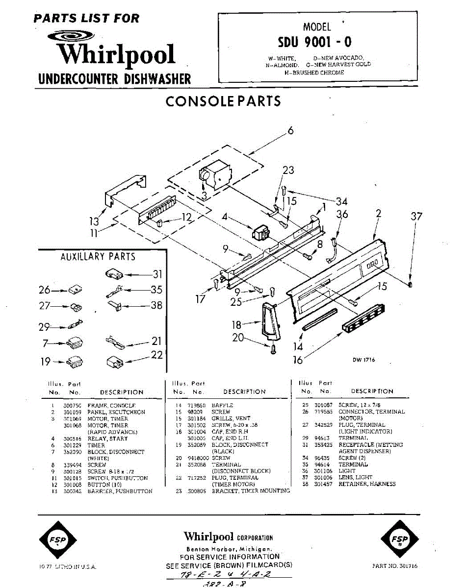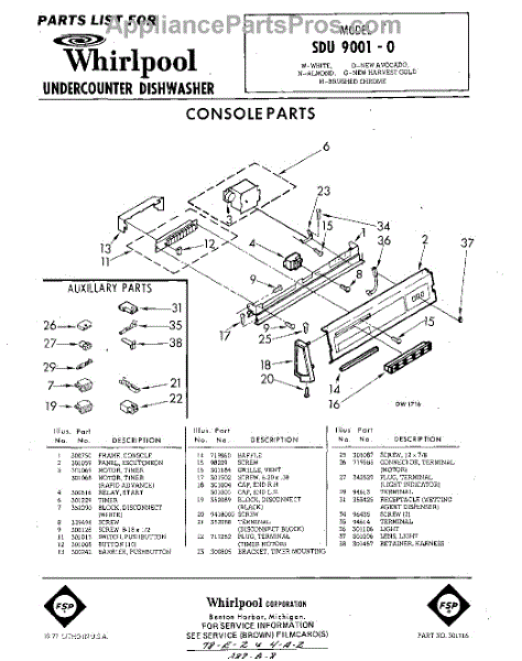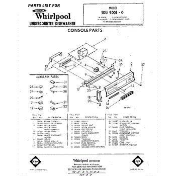 Parts for Whirlpool SDU90010: 01 - Console Parts