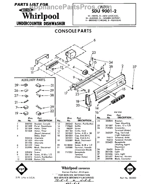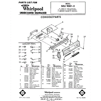 Parts for Whirlpool SDU90012: 01 - Console Parts