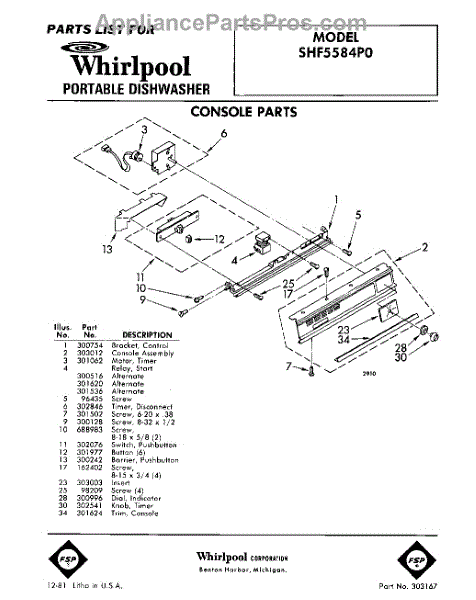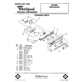 Parts for Whirlpool SHF5584P0: 01 - Console Parts