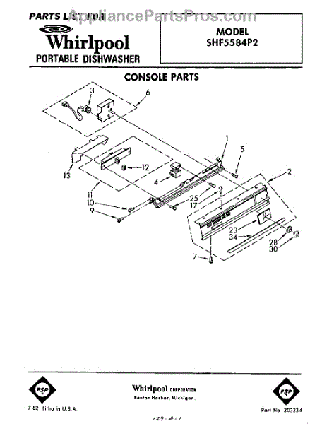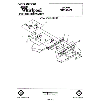 Parts for Whirlpool SHF5584P2: 01 - Console Parts