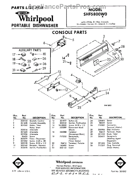 Parts for Whirlpool SHF5800W0: 01 - Console Parts