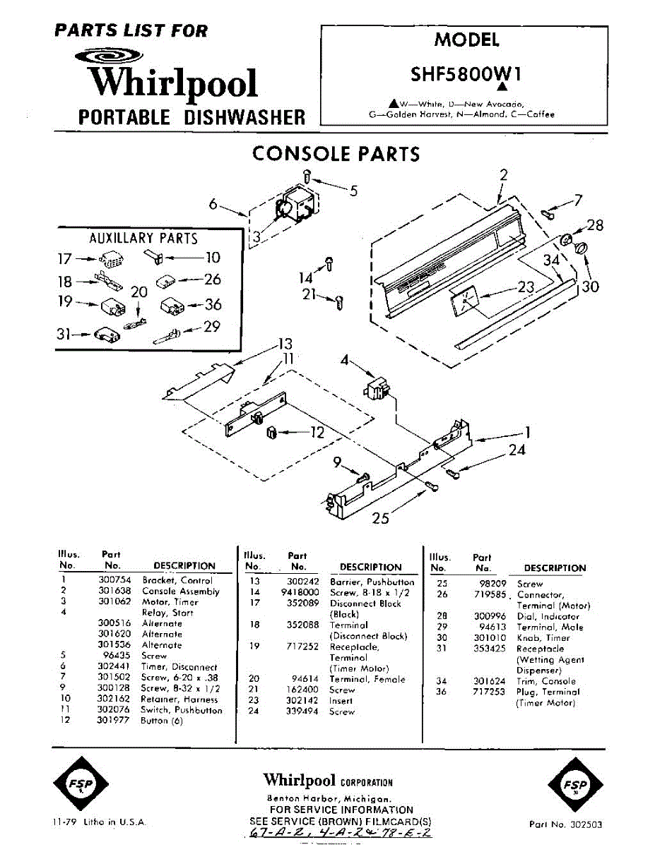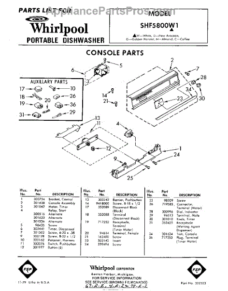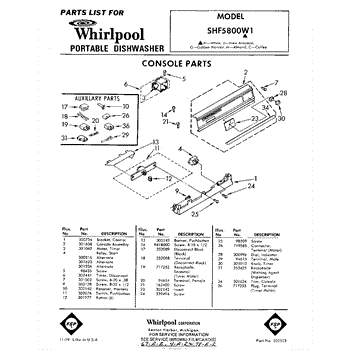 Parts for Whirlpool SHF5800W1: 01 - Console Parts