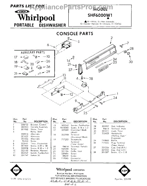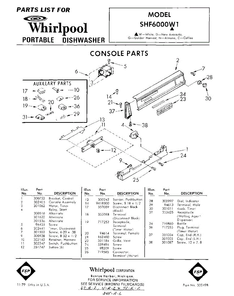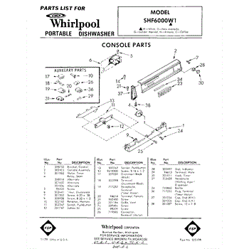 Parts for Whirlpool SHF6000W1: 01 - Console Parts
