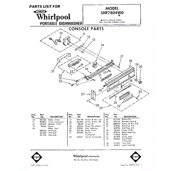 Parts for Whirlpool SHF7804W0: 01 - Console Parts