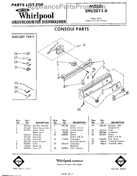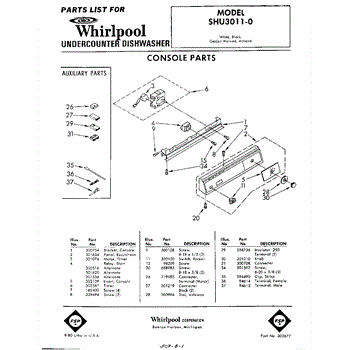 Parts for Whirlpool SHU30110: 01 - Console Parts