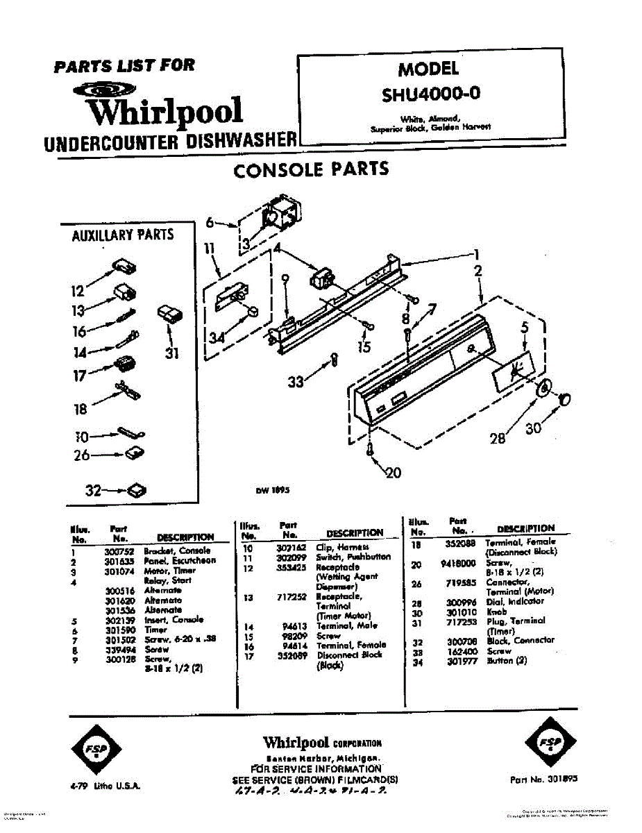 Parts for Whirlpool SHU40000: 01 - Console Parts