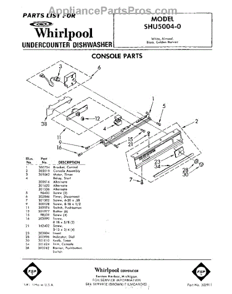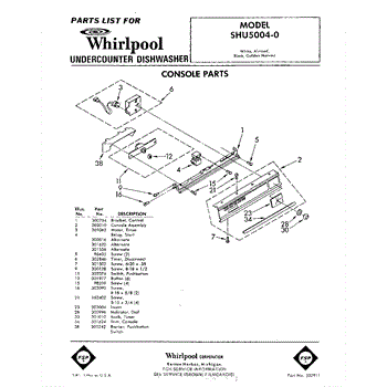 Parts for Whirlpool SHU50040: 01 - Console Parts
