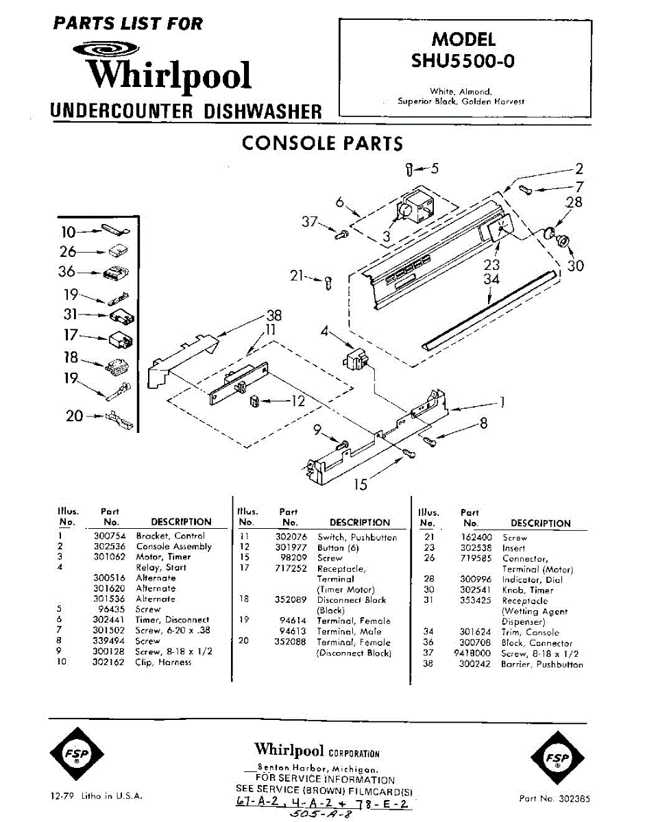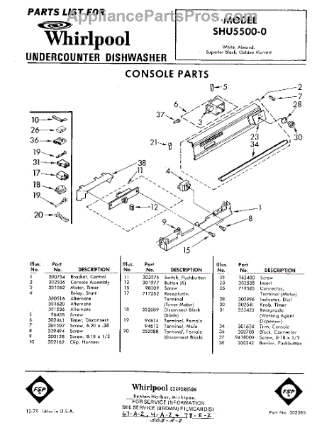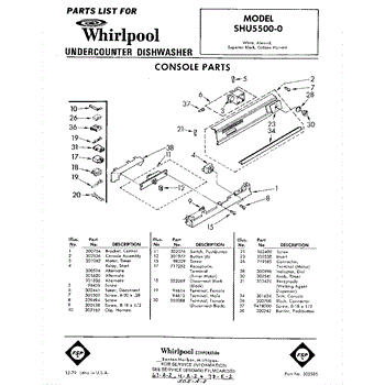 Parts for Whirlpool SHU55000: 01 - Console Parts