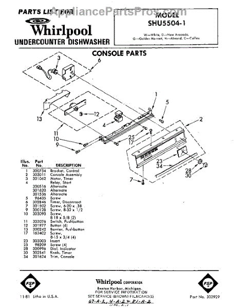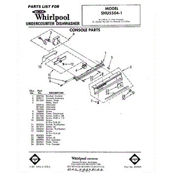 Parts for Whirlpool SHU55041: 01 - Console Parts