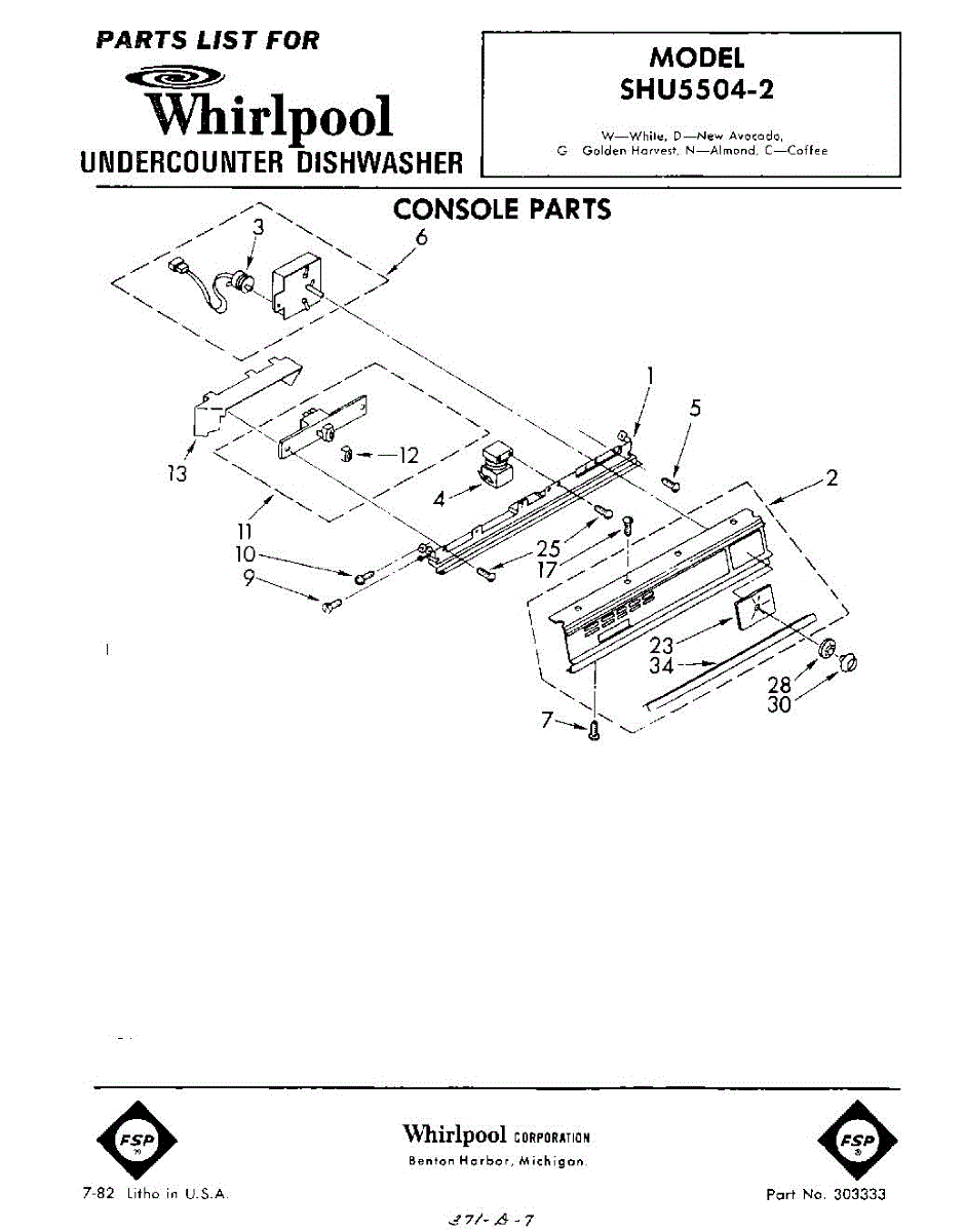 Parts for Whirlpool SHU55042: 01 - Console Parts