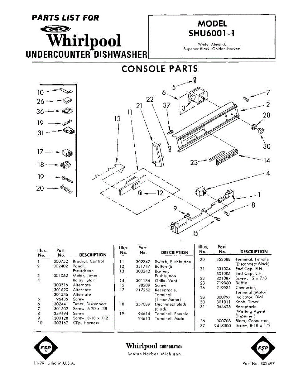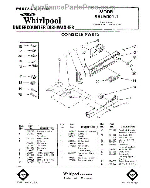 Parts for Whirlpool SHU60011: 01 - Console Parts