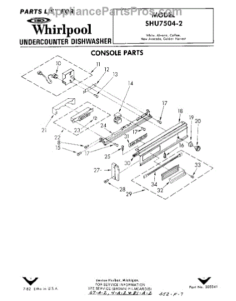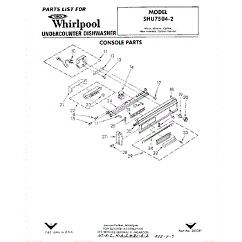 Parts for Whirlpool SHU75042: 01 - Console Parts