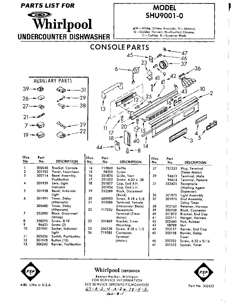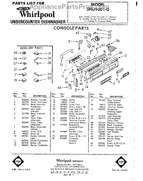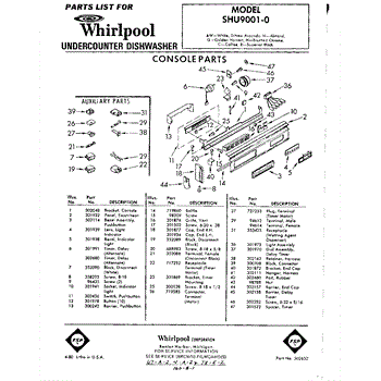 Parts for Whirlpool SHU90010: 01 - Console Parts