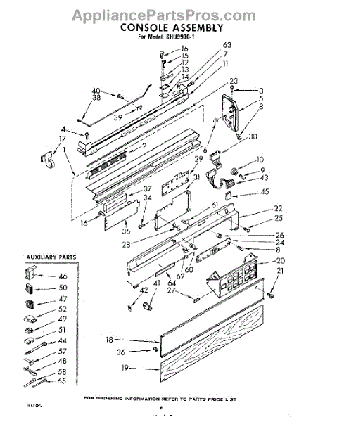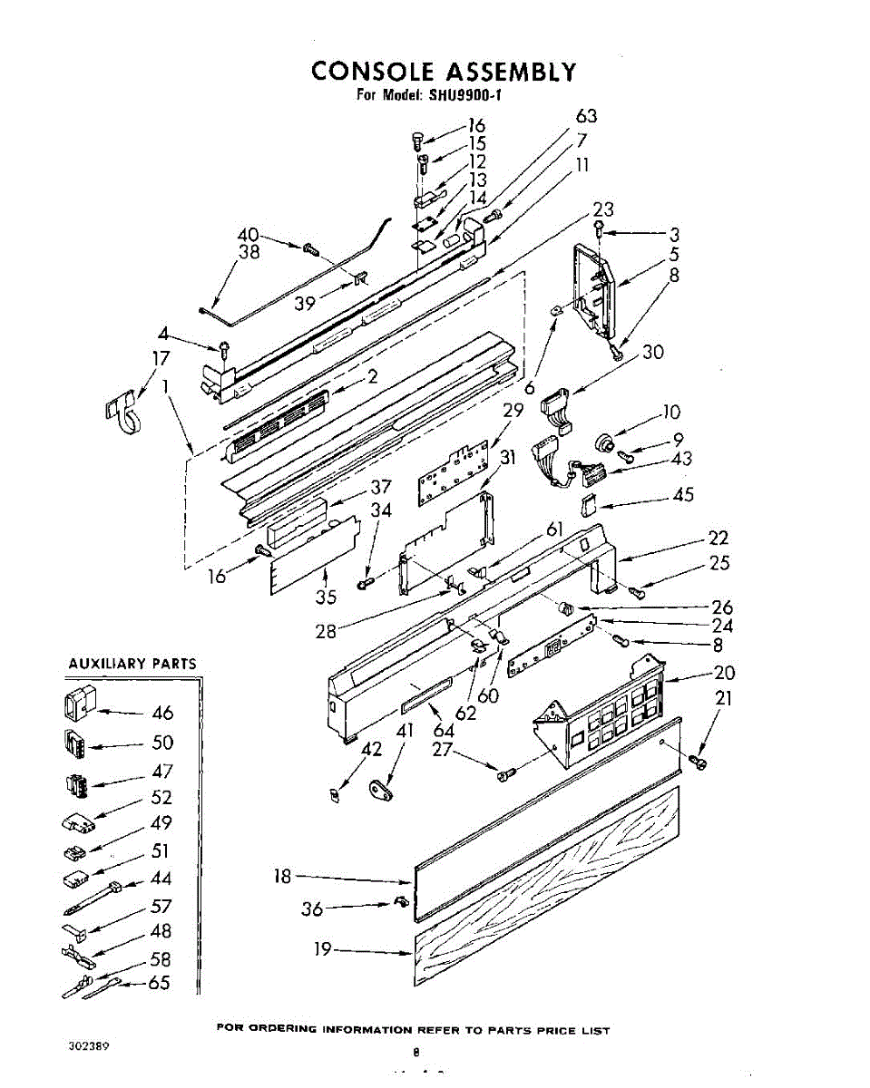 Parts for Whirlpool SHU99001: 08 - Console Parts