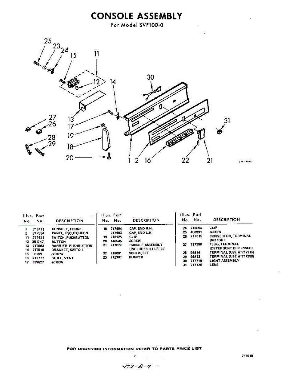 Parts for Whirlpool SVF100W0: 07 - Console Parts