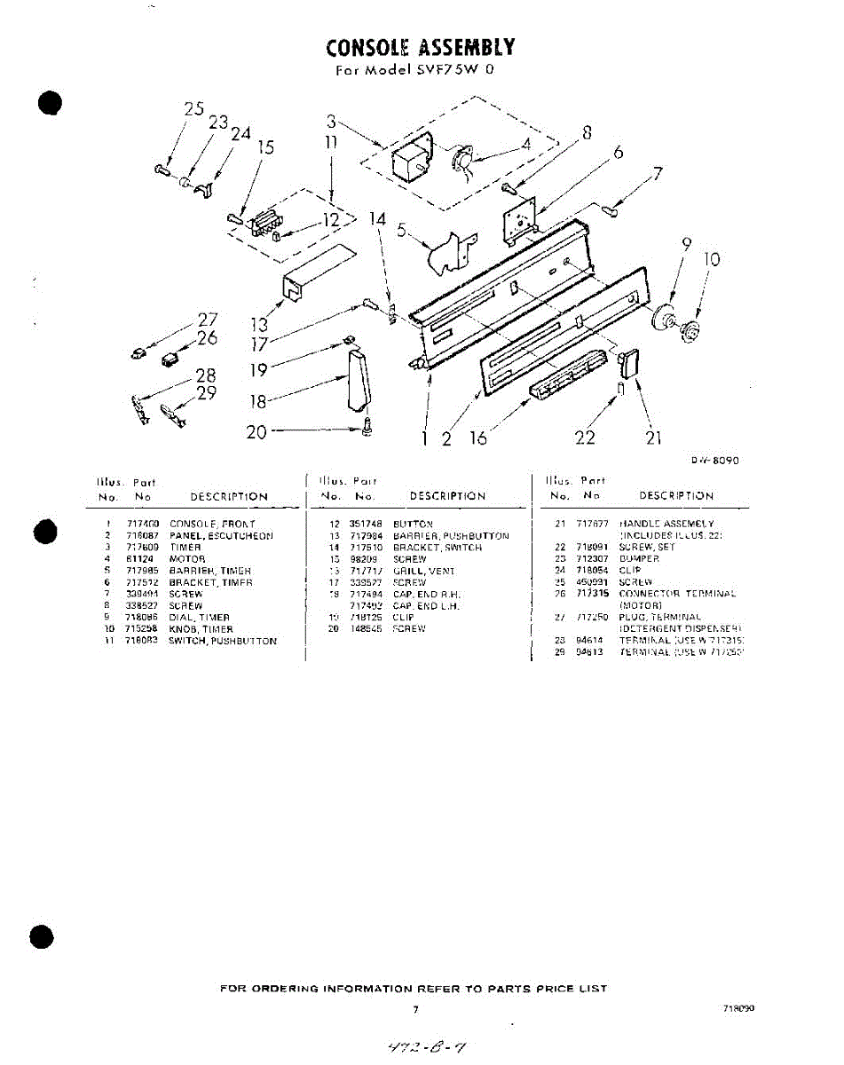 Parts for Whirlpool SVF75W0: 07 - Console Parts