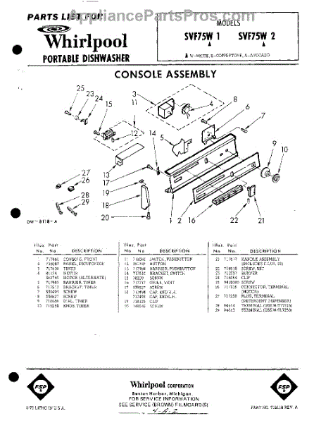 Parts for Whirlpool SVF75W1: 01 - Console Parts
