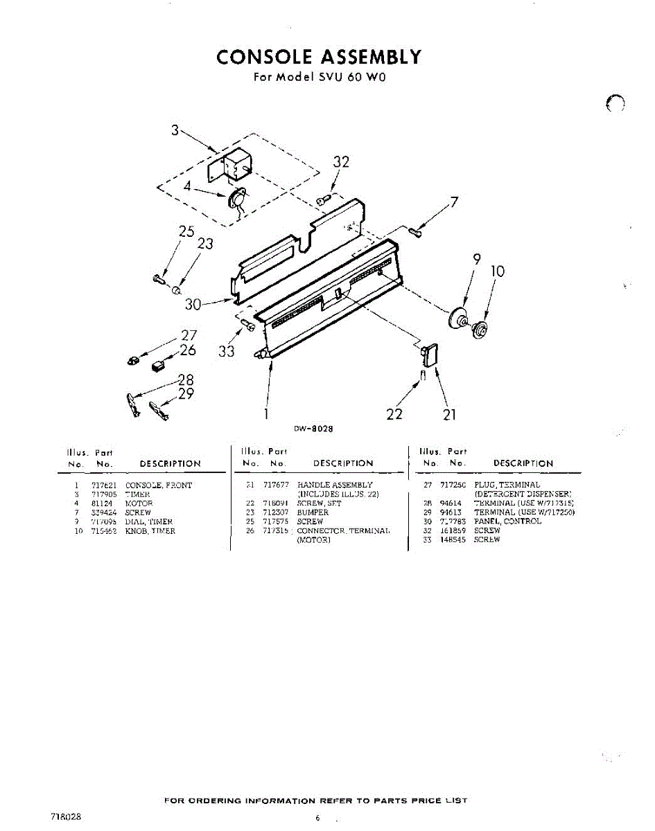 Parts for Whirlpool SVU60W0: 06 - Console Parts