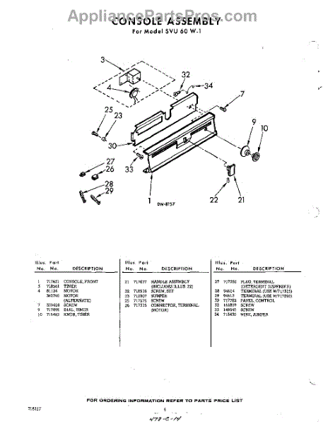 Parts for Whirlpool SVU60W1: 06 - Console Parts
