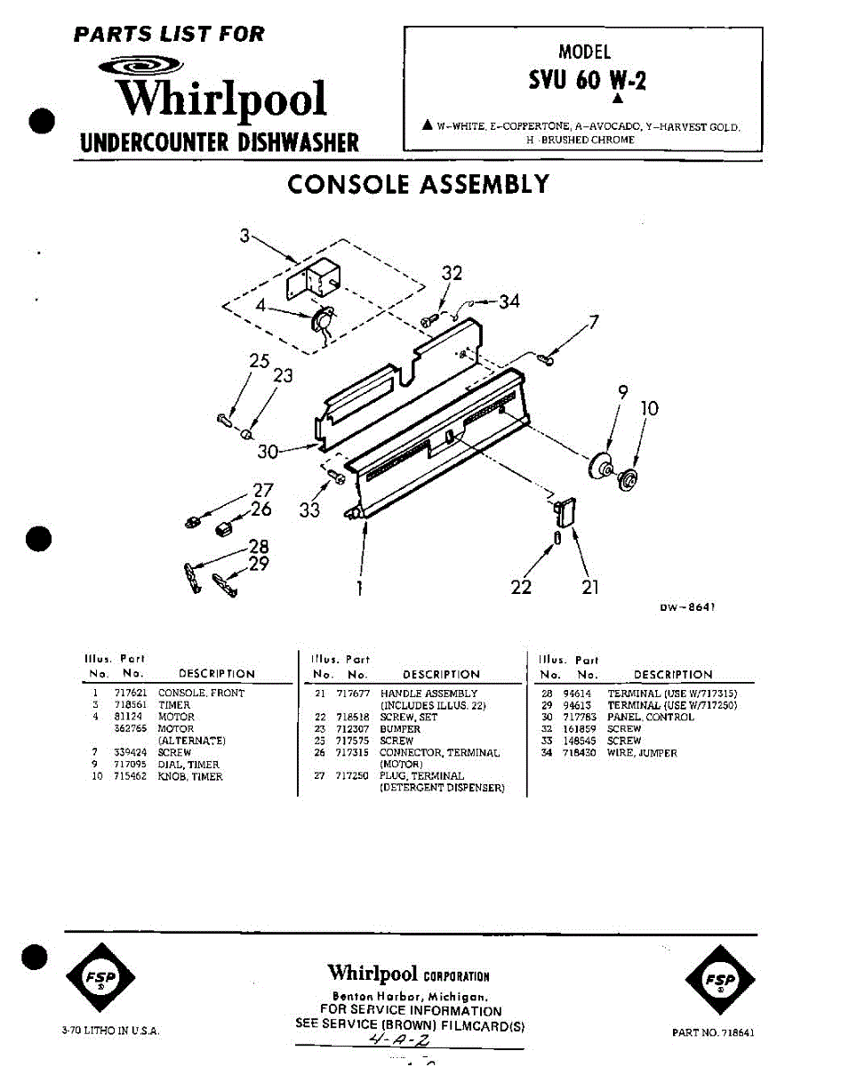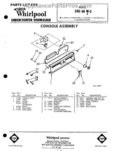 Parts for Whirlpool SVU60W2: 01 - Console Parts