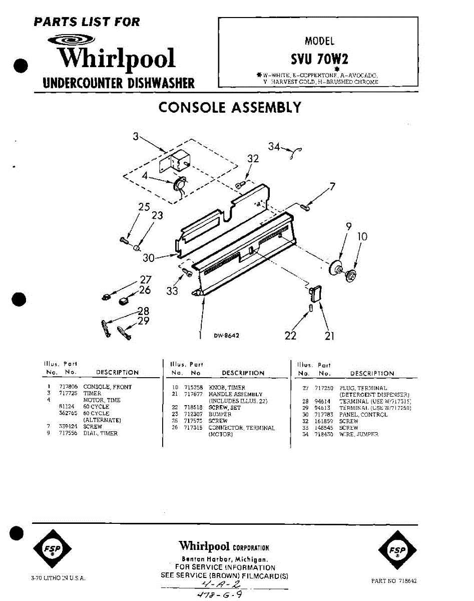 Parts for Whirlpool SVU70W2: 01 - Console Parts
