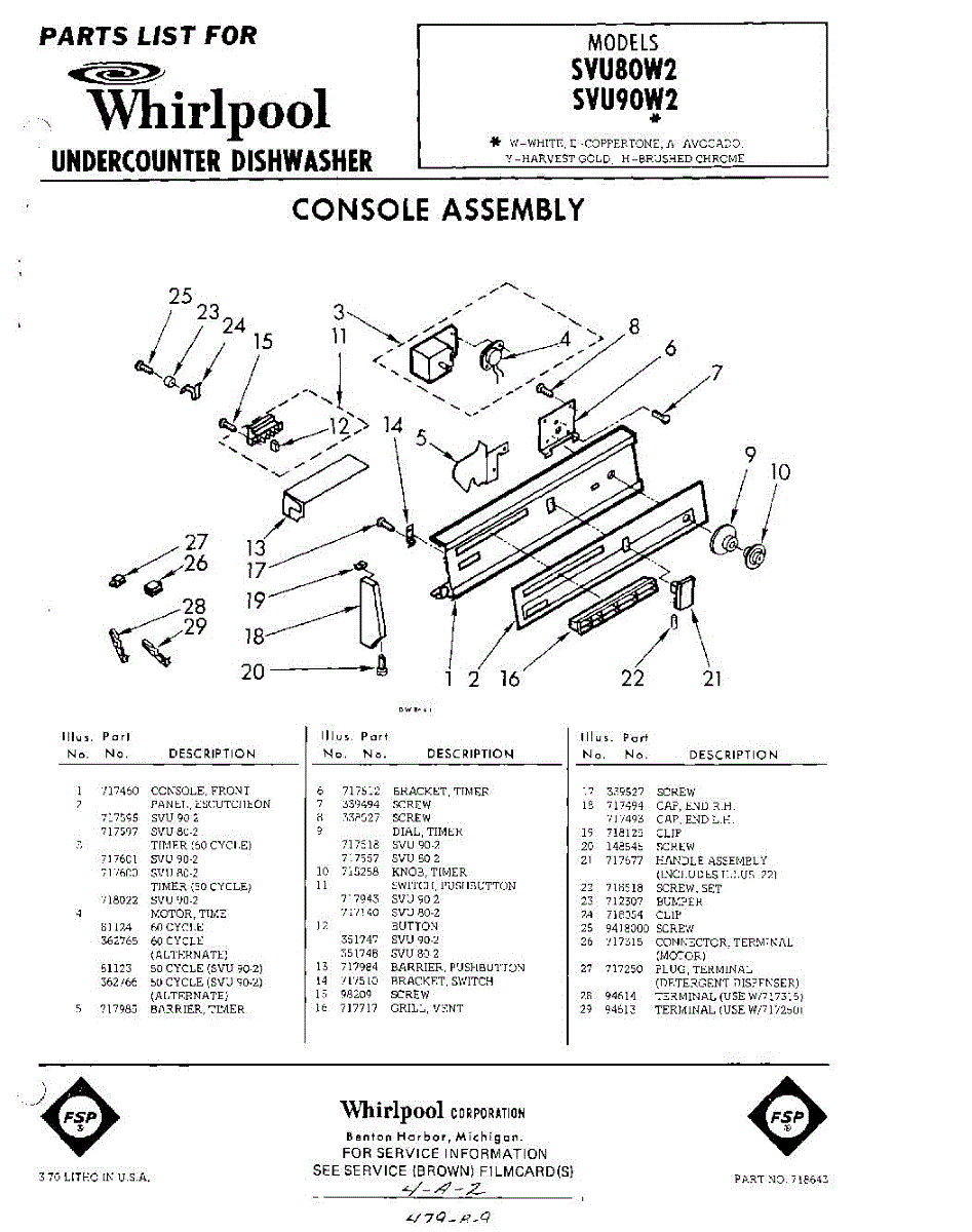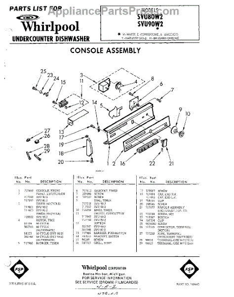 Parts for Whirlpool SVU90W2: 01 - Console Parts