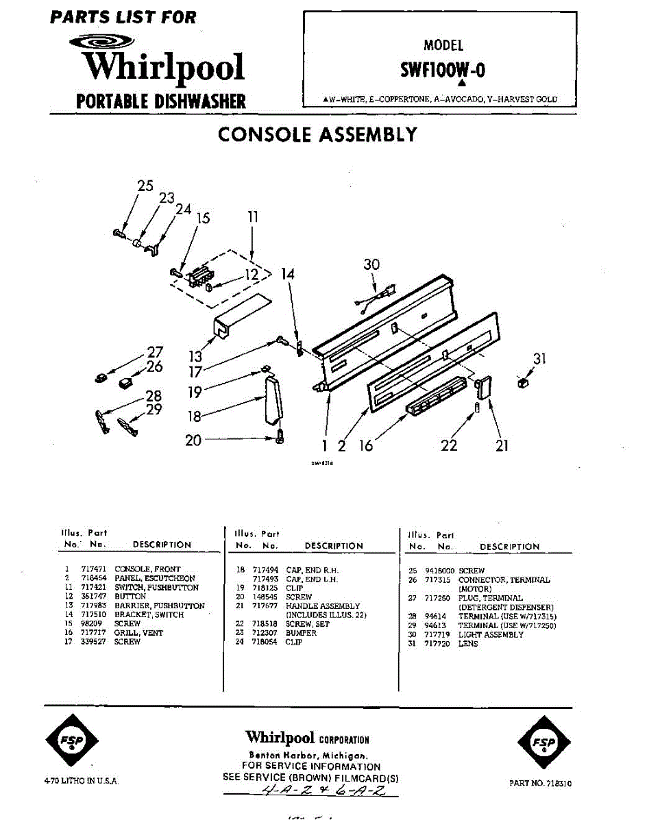 Parts for Whirlpool SWF100W0: 01 - Console Parts